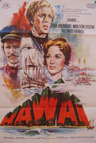 Aside from the plot points the film is well made with an Elmer Bernstein score. He had worked previously with producer Mirisch giving us the memorable theme to The Magnificent Seven. The director George Roy Hill does a fine job and went on to do the two Newman/Redford films, Butch & Sundance and The Sting. Also turning up is Carrol O’Connor before his iconic television role. Hawaii was nominated for seven Oscars including one for Jocelyne LeGarde in the Best Supporting Actress category.