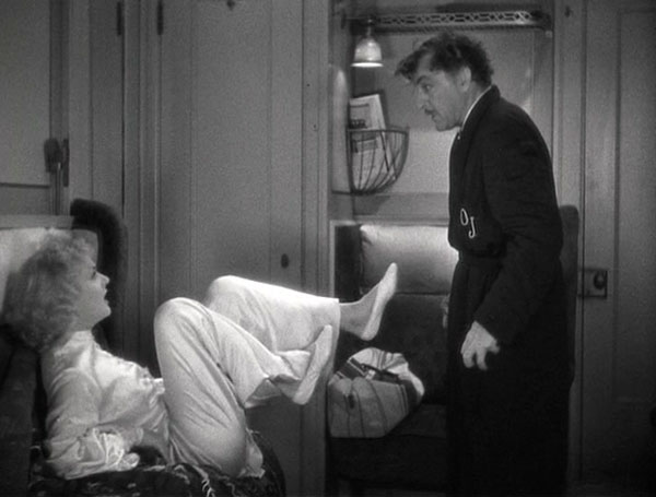 As a pre code comedy there are a couple of scenes that wouldn’t have been played quite the same that stand out. One is of Carole dressed in an open housecoat in bra and panties and the other is a scene on board the train where it’s quite obvious she isn’t wearing a brassiere at all. Within the year that just wouldn’t be acceptable where the Hays Code is concerned.