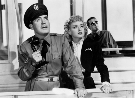 At times this film is reminiscent of the Pat O’Brien – James Cagney films of the early thirties like Here Comes the Navy and Devil Dogs of the Air. Especially during the early segments where bombardier trainees Robert Ryan and Eddie Albert among others are all trying to impress commanding officer O’Brien. Pat’s also got his hands full with old pal Randolph Scott who doesn’t agree with Pat that large scale bombers are best suited to aerial warfare.