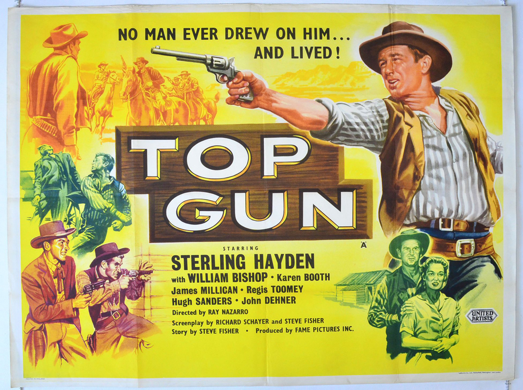 For this black and white oater with Mr. Sterling Hayden, you could pretty much take any hour long television western of the day and stretch it out by an extra twenty minutes and voila! You have the script for Top Gun.