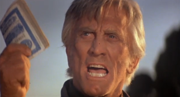 “It’s a hard county. Makes for hard men.” So says peg legged Kirk in a line near the start of the film that was meant for the cleft chinned star. It could have been used in so many of his films over the years. Douglas actually had played a peg legged character previously in his directorial debut in 1973, Scalawag.