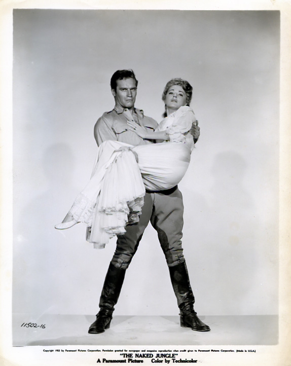 Eleanor Parker is one of the fifties best treasures on camera. She’s beautiful, sexy and I can’t help but love her husky voice either. Like Maureen O’Hara she paired well with physical leading men sparring on screen with the likes of Gable, Granger and Taylor quite successfully. Not to mention Charlton Heston………. cameo time.