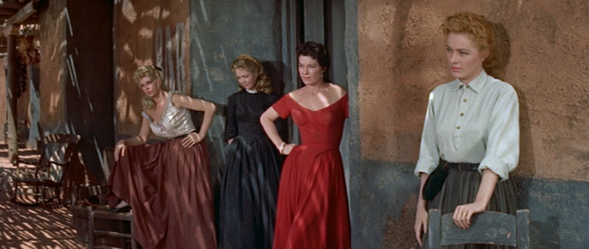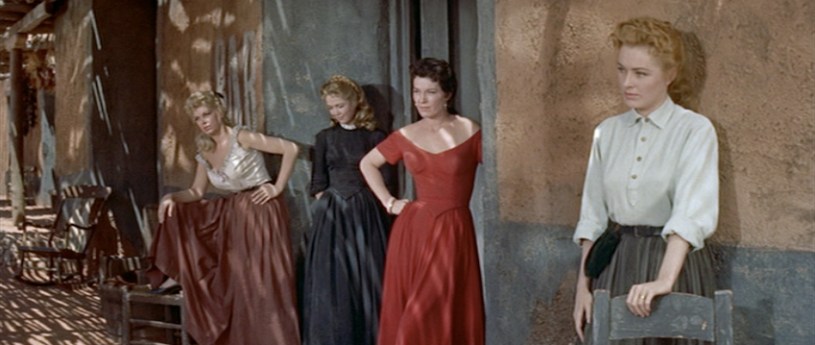 It’s a tall tale of four women living on a ranch with their mother-in-law Jo Van Fleet and a buried treasure in gold worth a 100 grand. It seems that their hubbies were a gang of bank robbers and three of the four got themselves killed in an explosion. They were burnt beyond recognition and the four women along with Van Fleet are hoping the remaining son returns for the loot and to claim his woman. Van Fleet has taken it upon herself to keep the women pure while waiting. It’s been a long two years. Enter Gable.