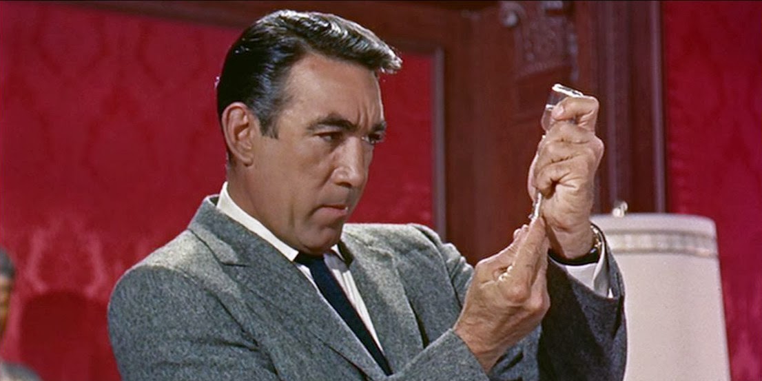 Nolan plays a shipping tycoon and stern task master whose become bedridden. Physician Tony Quinn is administering the needles to keep Nolan alive. All it would take is just one air bubble to free Lana from the servitude and constant verbal abuse she gets from her hubby. Then of course after a little time for grieving the two would be free to pick up their romance and go public.