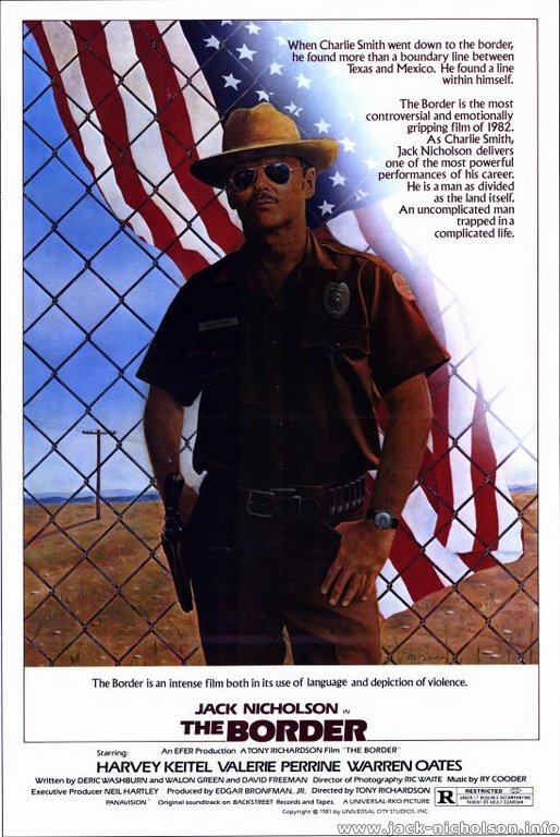 Trying to keep his nutty wife Valerie Perrine happy we find Jack taking on a border patrol job along the Texas/Mexico line. They’ve taken on a new house next to her sister whose hubby Harvey Keitel gets Jack the job.