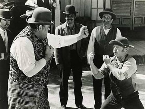 A great deal of the laughs come from Jack Elam who by this time had become accustomed to parodying his bad guy image as a rattle snake mean bounty hunter looking for the infamous Panama Jack. The fact that he wears coke bottles for glasses allows Jack to steal every scene he’s in as he can’t even see the difference between the wooden drugstore Indian and the real Iron Eyes Cody.
