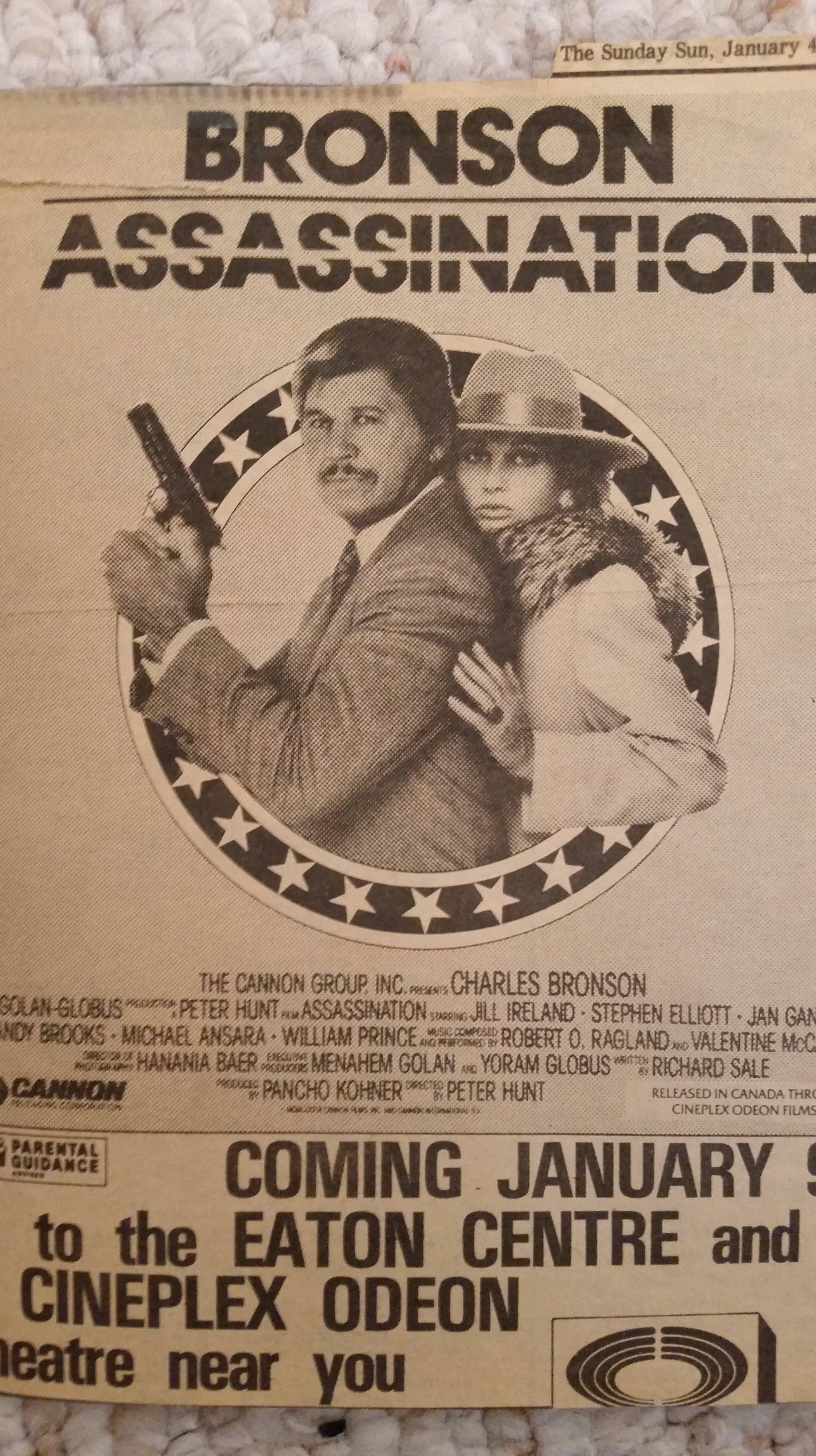 Great stuff that makes me think of ye olden dayes, when there was an Eatons in the centre. City TV and The Record tv guide… Bronson I didn’t get into until older, Once Upon a Time in the West and Death Wish are faves but I still haven’t seen many of his, so here’s an idea: you should do a post recommending essential Bronson.