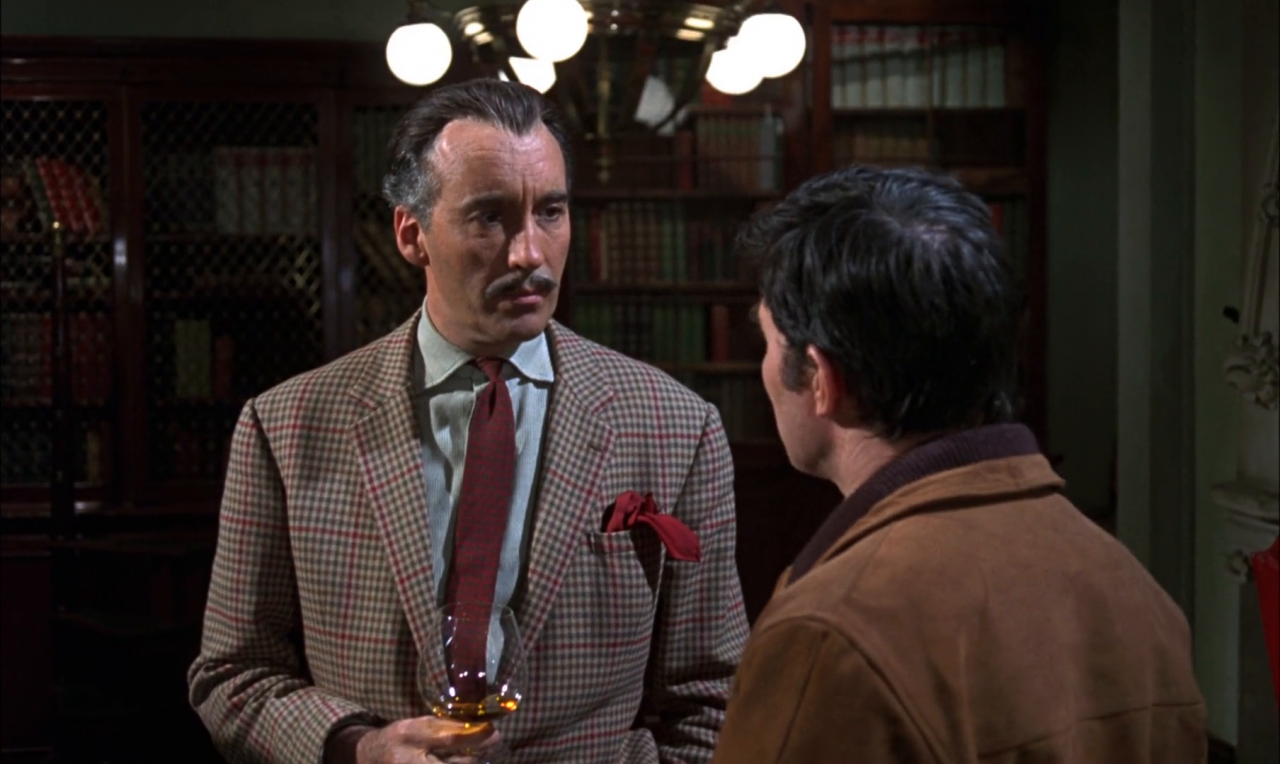 Enter Mr. Mark Eden as a man trailing his brother and led to believe he has met with mischief and perhaps death. The road leads to an estate overseen by Sir Christopher. He’s all for opening his home and trying his best to be helpful to Eden in his search though he has little to actually offer. Hard not to consider this role as a precursor to his legendary Lord Summerisle. Fortunately for Eden, Lee has a niece played by Virginia Wetherell who takes a fancy to him and joins in the search for answers.