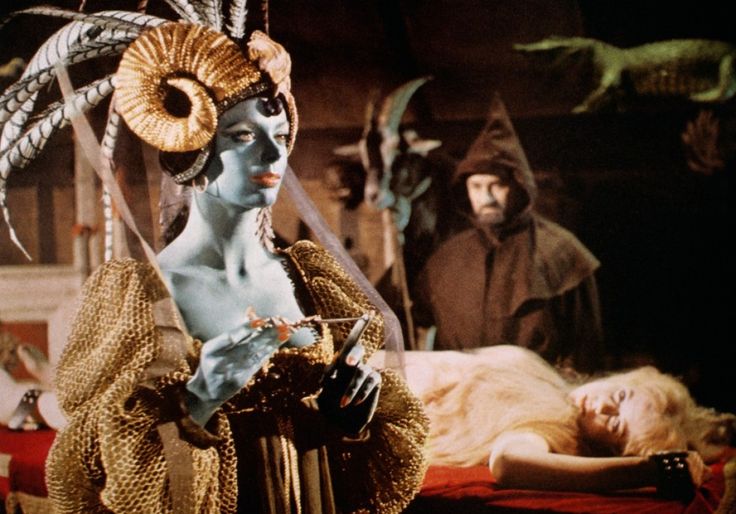Boris Karloff offers up a vast knowledge of witch craft to Eden in the role usually reserved for Peter Cushing when we find Lee up to no good. Boris was of course mainly confined to a wheel chair by this point but he soldiers on here and offers some pointers to young Eden and does his best to get in to the action at the fadeout.