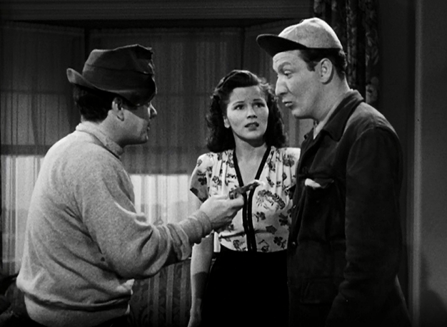 When leading lady Teala Loring snaps a photo of Huntz in front of a local bank she accidentally times it with a bank heist. No she doesn’t catch the robbers on photograph. What she gets is a loopy looking Huntz holding the bag of money as he hands it back to the robbers off camera. That photo turns out to be quite valuable to the gang of thugs and their mastermind Ace-Deuce. Love that name. It’s played by legendary Sheldon Leonard who did his fare share of these gangland roles with the tough guy talk throughout his long and successful career.