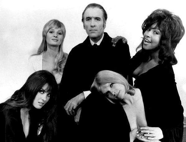 Things quickly get out of hand in an old abandoned church where out in the decaying graveyard lies the remains of Lee’s Count. Chalk the eerie music, black robes, fog and an overflowing goblet. Overflowing with a thick crimson bloody red concoction all over poor Caroline Munro’s upper torso and neck. Panicking the gang flees and in a great shot comes Lee out of the fog commanding the screen as he sizes up poor Caroline.