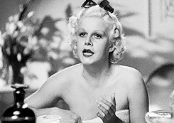 Hoping to spot a scene that probably wouldn’t make the cut after 1934 when the new “code” was ushered into cinema you’ll see a bare shouldered Jean being attended to with her make up artists. It’s more than obvious during the scene that she isn’t wearing a bra either. Sinful!