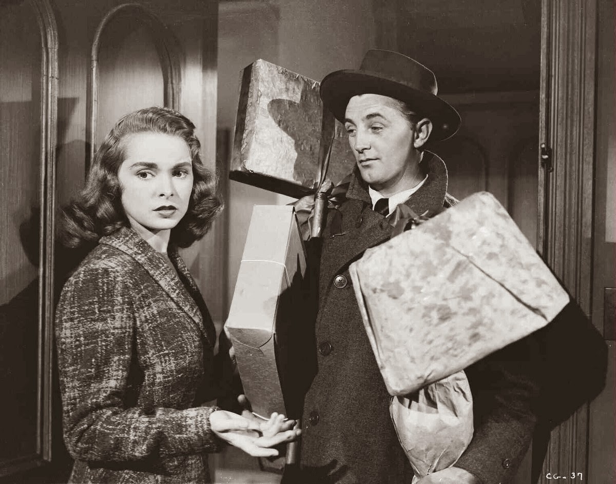 Christmas season approaches and Janet is working for a product comparison company. She buys products to be looked over and returned the following day for a refund. Wasting little time the opening scene has her purchasing an expensive train set from department store employee Robert Mitchum. Would you believe Mitch is actually working the counter in the toy section? I’d like to think he scored big with the single Moms.