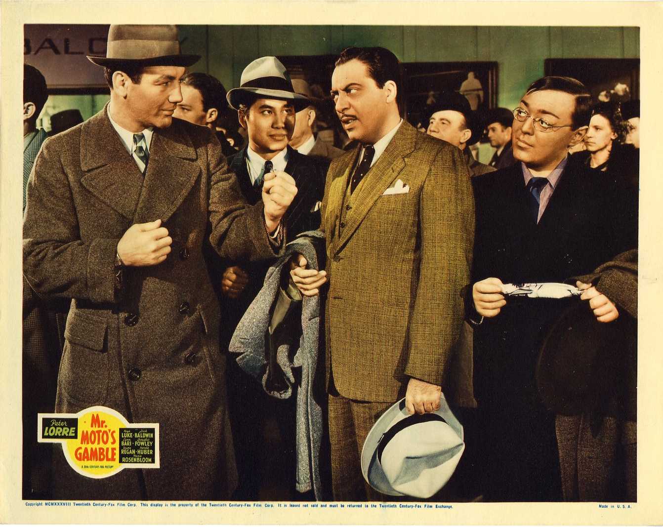 The trio find themselves at a fight featuring up and comer Baldwin. Baldwin wins the fight by KO but his opponent dies shortly after being stopped. It seems he was poisoned and Baldwin is implicated. Could it be possible that there was a poisonous substance on his gloves? Lorre as Moto looks appropriately suspicious and begins to investigate the numerous bookies, gamblers and underworld figures attending the fight.