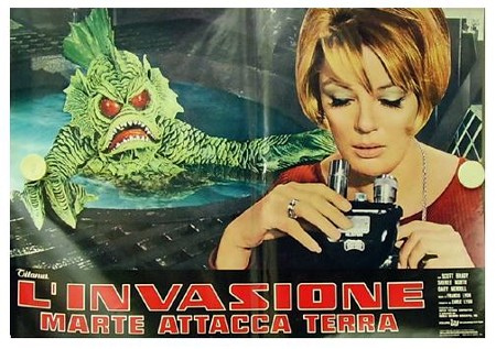 This underwater man in a rubber suit creature feature stars slumming Scott Brady, Gary Merrill, John Howard and Sheree North. When an underwater science lab station begins seeing strange blips on the radar screen, military man Brady is called in. With the use of a miniature diving bell, Brady is dropped to the depths of a swimming pool doubling as the ocean to enter the lab where he finds Merrill as the house scientist and North as the rather attractive assistant.