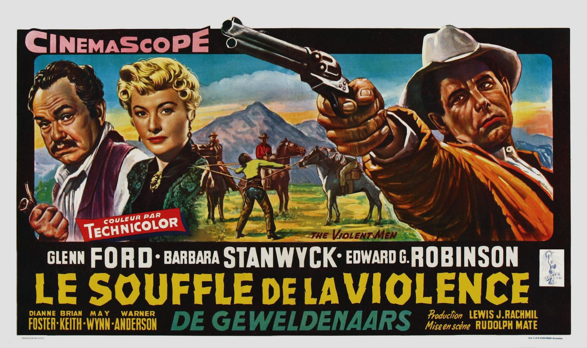 This classy western from Columbia Pictures featured a top cast of well known names directed by the sure hand of Rudolph Mate’. Glenn Ford peaking in popularity poles takes the lead role of the small rancher being pushed about by third billed Edward G. Robinson portraying the cattle baron with designs on possessing all the land in the valley.