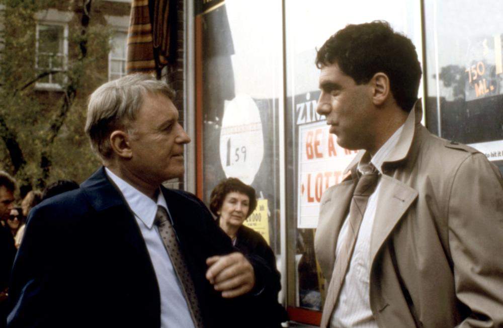 Shortly after Rod’s bullying tactics on Moore, our peaceful psychiatrist’s secretary turns up tortured and quite dead at the office. While Rod is riding Moore hard, his partner on the force, Elliott Gould is playing the nicer half of the intrepid detectives. As the plot moves along in this Cannon Films production, Moore soon realizes that he is the mark that the suspected team of hit men are after. Not trusting Steiger, he goes out and hires himself a private investigator. He’s surprised to find out that his choice via The Yellow Pages is an aging Art Carney and even more surprised to see that old Art has plenty of street smarts that just might keep Moore alive to the final reel. Truthfully, Carney comes off pretty good in this all too brief role.