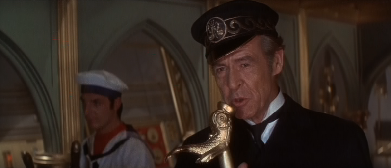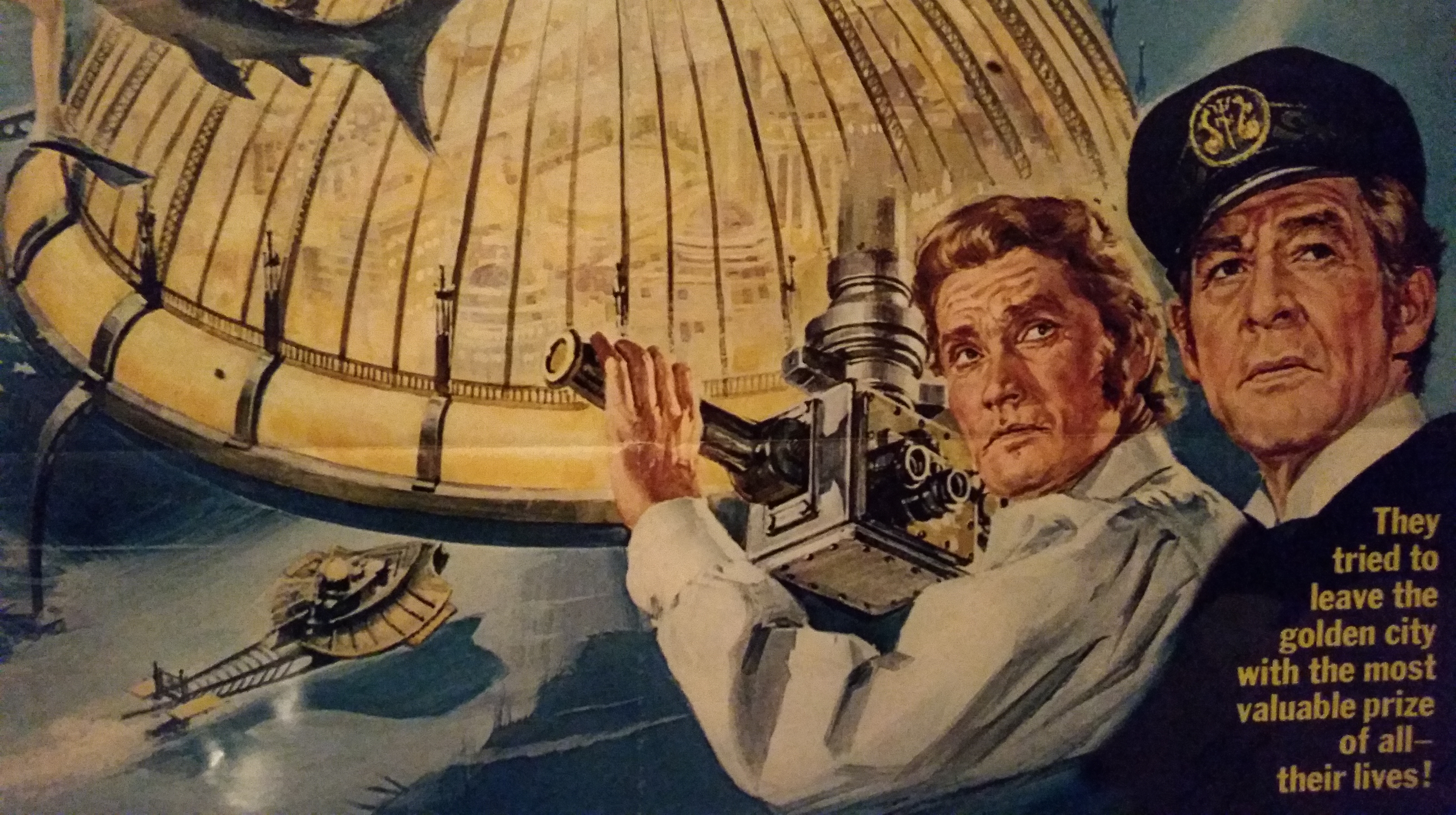 The special effects are passable for the time and the tossing of Chuck’s ship over the opening scenes are well enactedย  with the use of models and what I assume to be a large indoor tank for the actors to be thrown about while diving off the ship to to the waters below. The set designers do their best as well at creating the interiors of the underwater city and the Nautilus where the majority of the film will take place.