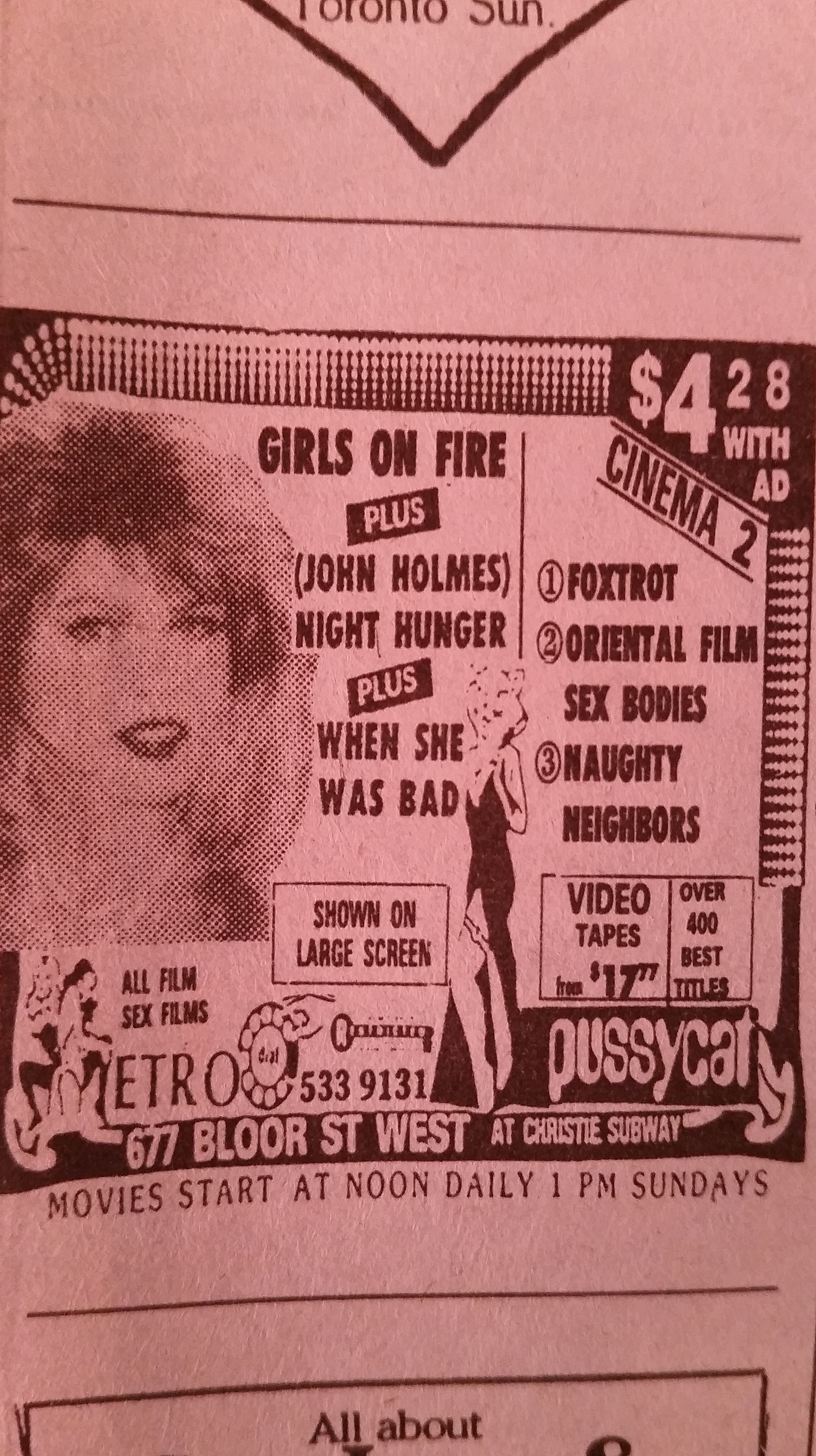 Ha! What memories those now “vintage” film and TV listings bring up! Hey, how much were tickets at the Pussycat without the ad? Er, not that you’d know that, lol. I was just curious because that’s the first time I ever saw a coupon for a trench coat flick. I bet they had senior citizens discounts too (and you probably got free jujubes and a soda if you brought a date, lol) ;D