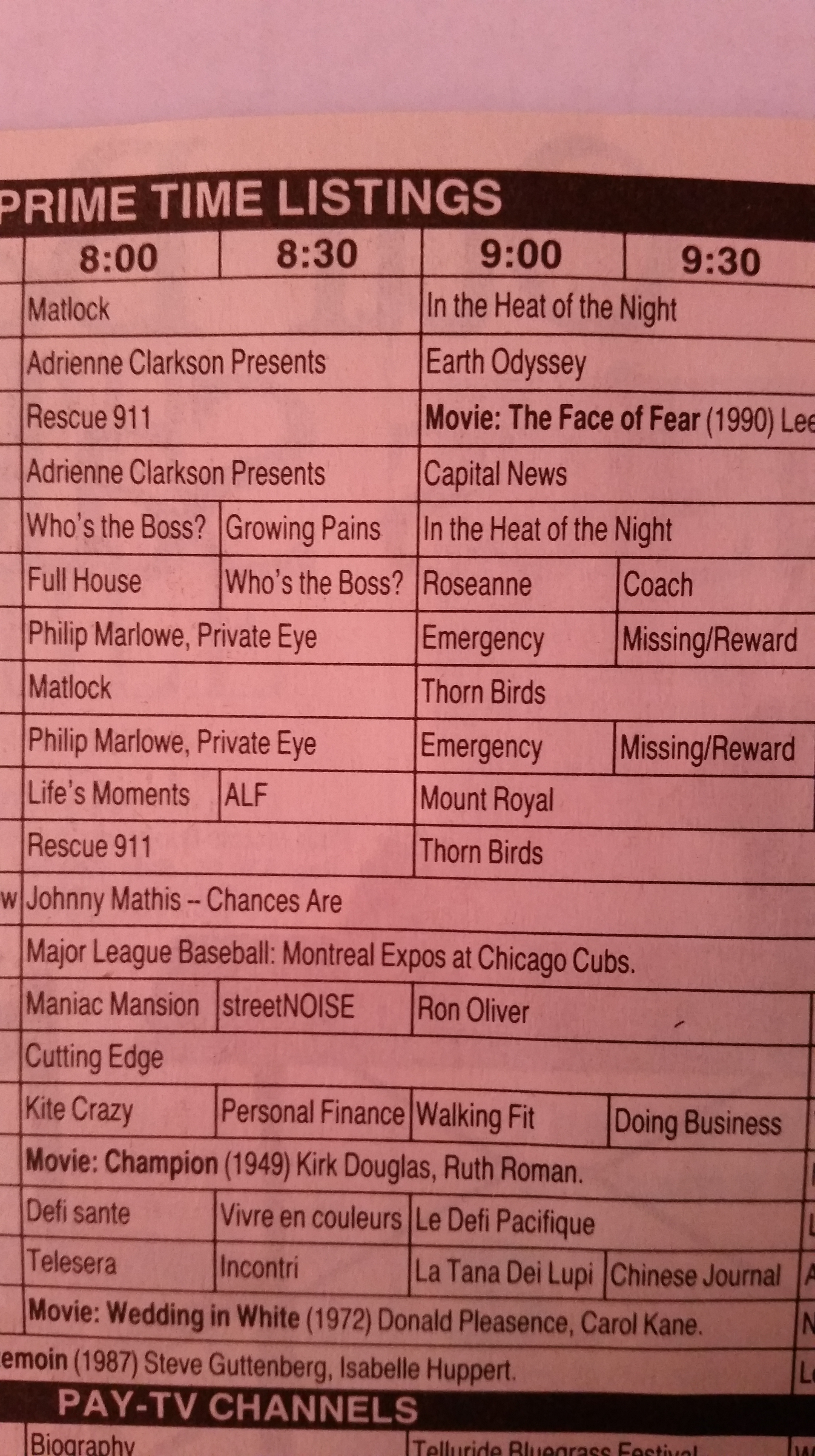 What’s playing tonight on television for the stay at home crowd? Take your pick. Note the Expos we’re still in existence. And I still haven’t found a copy of that Donald Pleasence film.