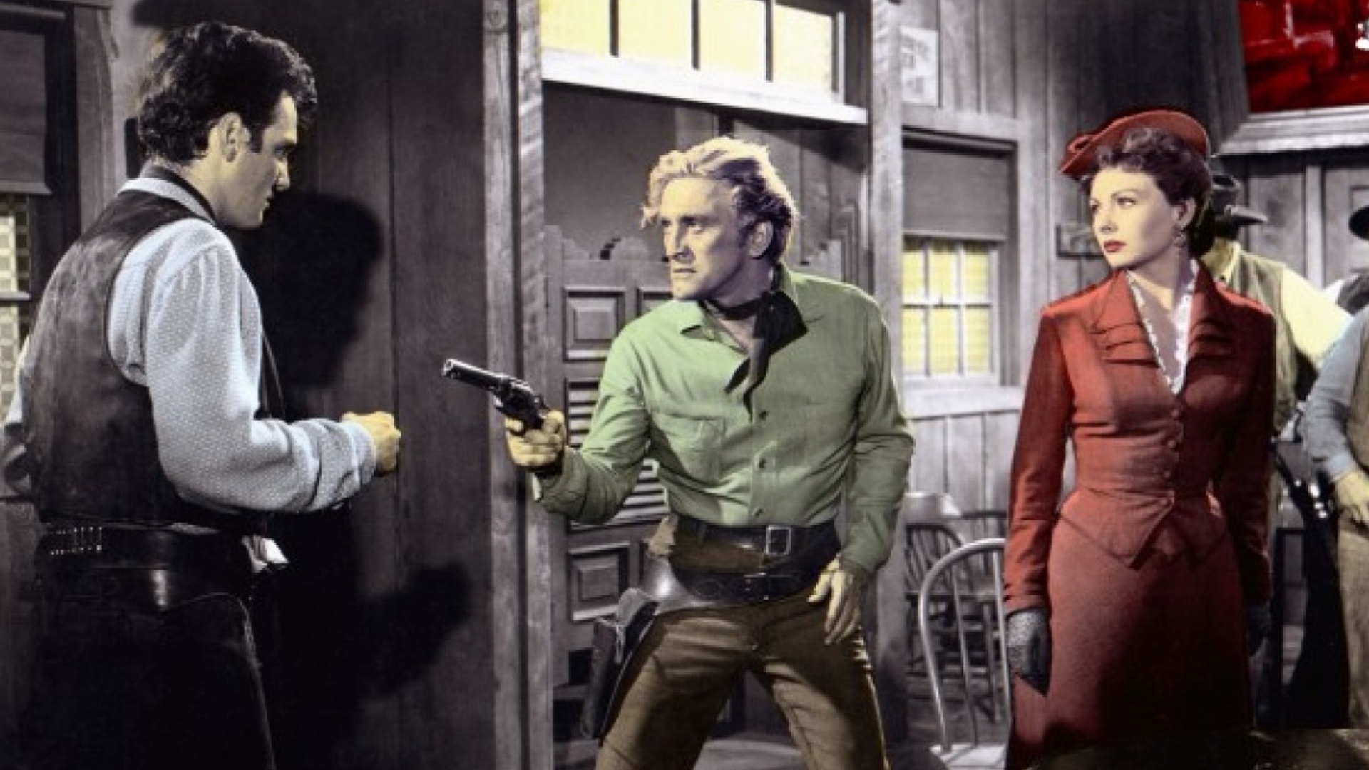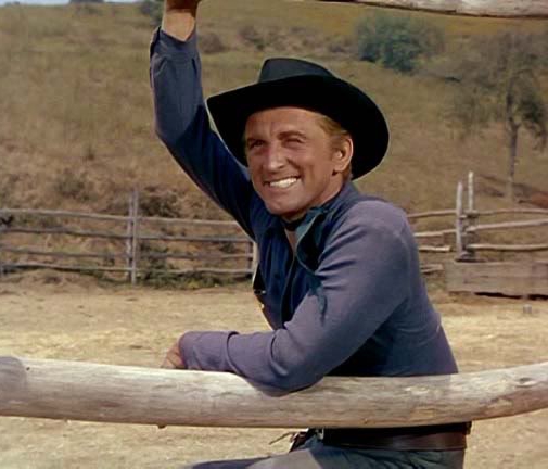 In Kirk’s autobiography The Ragman’s Son, he fondly recalls being able to film his trick shooting, gun twirling sequence in one take. No cutaway to the hands of a skillful double. It’s pure Kirk.