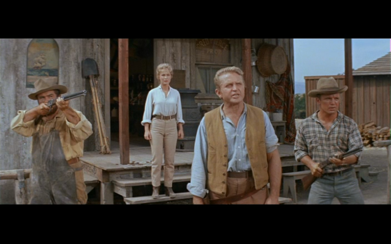 This is a racially charged oater with character players like Jaeckel, Roy Jenson and Karl Swenson quickly turning there backs on McIntire and his family because of Del Rio and the half blooded Kiowa, Elvis. It’s a script that may see brother vs.brother when Elvis begins to drift towards Acosta’s warriors as opposed to his white upbringing and sibling, Forrest.