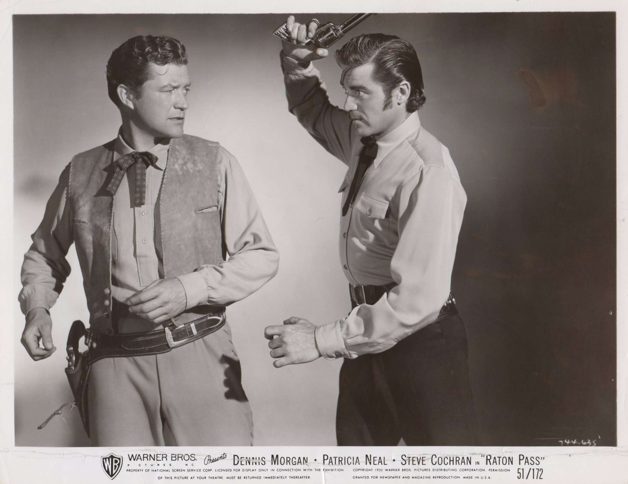 So says Dorothy Hart as the woman who longs for Morgan’s touch and one he’ll soon come to realize will move and heaven and earth to be by his side. Morgan’s plan to sell out to Neal and take all the men with him to the other side of the title’s Raton Pass almost backfires. Neal goes out and hires Cochran to ramrod using his guns to settle all disputes and bring in a gang of gunfighters to do the dirty work.