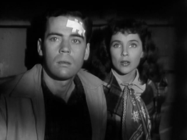 Carla Balenda is on hand as nurse to her brother’s practice and helps mend Reid’s cut before he settles into the local motel for the night owned and operated by Raymond Burr. Big and friendly Ray tells Reid of the fact that he’s drifted into a ghost town thanks to the trout supply disappearing in the local lakes. Things just don’t seem normal to Reid and he senses a story.