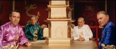 I’d love to have heard what George Raft may have offered when the script called for him to sit at a table with a paper mache dragon head sitting atop his own. As film fans it’s hard not imagine it would have been a great opportunity to sit back on the set and watch the four men converse when the camera wasn’t running.