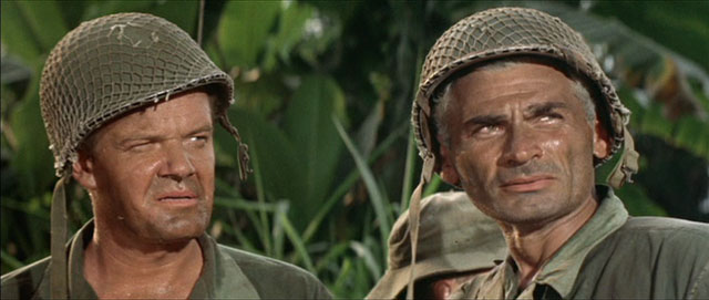 If anything what Merrill’s Marauders really needed was a stronger supporting cast along with Akins. More in line with another film released the same year as this, Hell Is For Heroes. That film included up and comers like James Coburn, Harry Guardino and Nick Adams. And where’s Richard Jaeckel? A film like this is a natural for the forever young character actor.