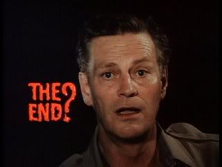 Before the final fade out, we get a wonderfully campy old fashioned 1950’s styled speech from Richard Webb playing the town sheriff on just what it is that mankind has had to defeat here on this destructive night. In true horror film fashion we get that classic question on the screen……..