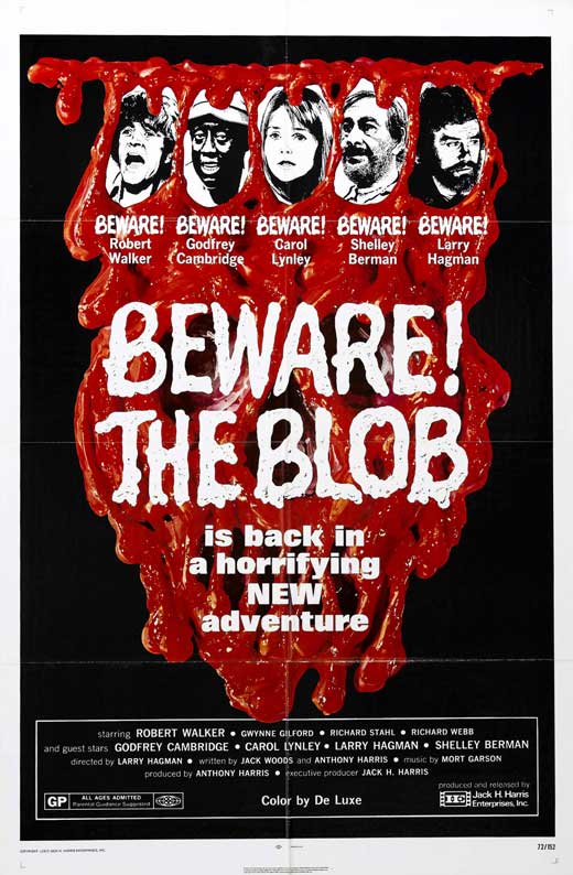 Aside from directing a few TV episodes, this proved to be the only feature film of Larry Hagman’s career. It’s Hagman we’re celebrating here thanks to Realweegiemidget and the Darlin’ Dallasers blogathon. With this came the opportunity for me to dust off an old VHS copy under the Son of Blob title. For those who are interested, this Hagman time capsule might find new life soon as it’s to be released by Kino Lorber on blu ray.