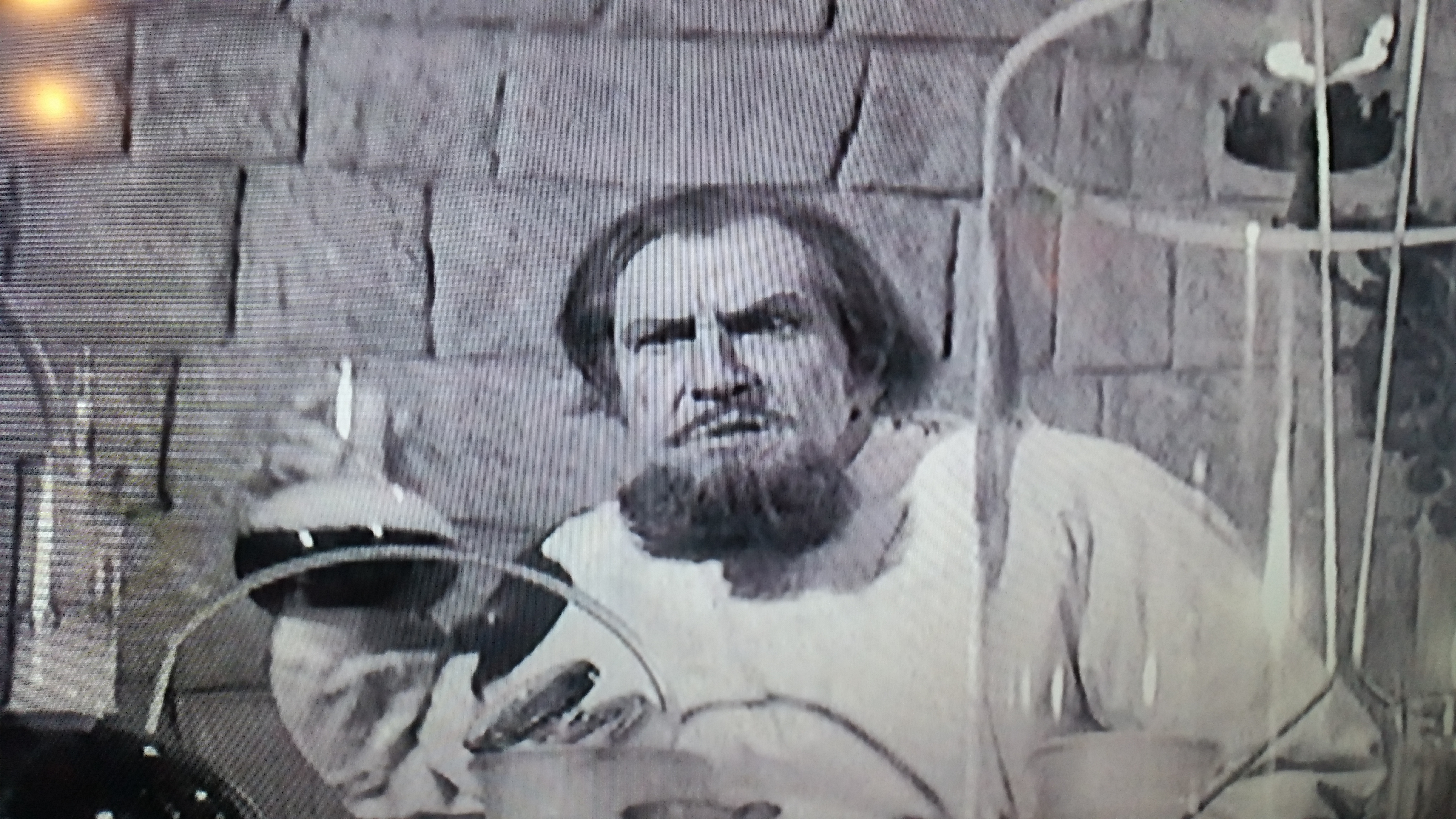 It’s a feast for the eyes of any classic monster film fan as plenty of people have come out to the theater in costume. The Monster and his Bride, vampires and even a Metaluna Mutant and a Sayer of the Law can be seen wandering in the back drop. The film the crowd sits down to watch is titled” Gravely Yours” and features a bearded Price in black and white intercut with original scenes lifted from The Bride of Frankenstein.