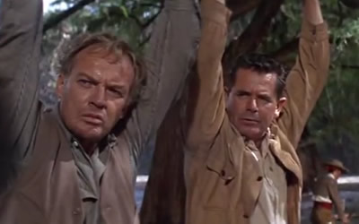 Best line in the movie? While Nico Minardos’ Mexican bandit is holding a gun on Kennedy, he attempts to disarm Ford. Ford holding a gun of his own aimed at Nico tells him soberly, “You value your life. I don’t value his.” in reference to Kennedy’s.