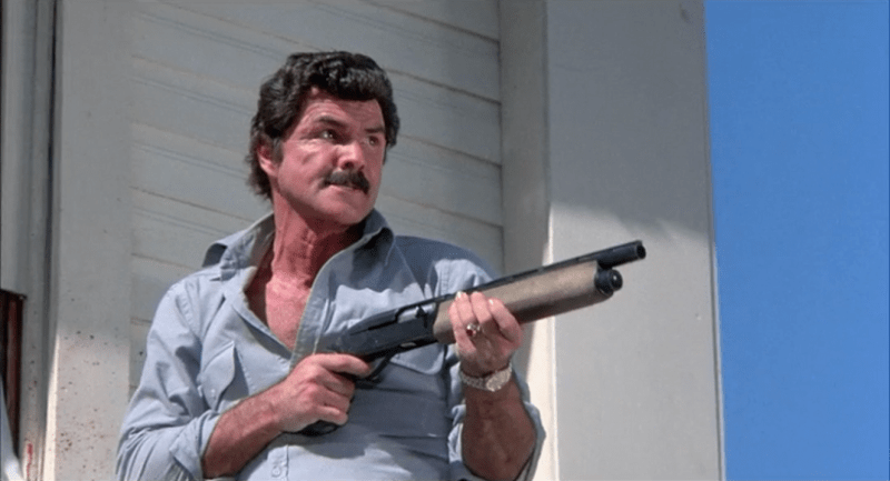 Burt’s silent tough guy is quick to pick up on the tension in the community and Robertson’s thugs want to know just who the stranger is living with Wilson at the filling station. Time for Burt to tangle with the behemoth, Dennis Burkley and the rascally Tracey Walter. The secrets out that Burt isn’t one to be tangling with when he leaves one man brutalized beyond repair and the other with a hole through his chest thanks to an oversized hand gun. All of this falls at the desk of Kenneth McMillan as the county sheriff who isn’t sure what side he’s on but knows that Robertson holds the power. “I bought your badge. Not your opinion.”