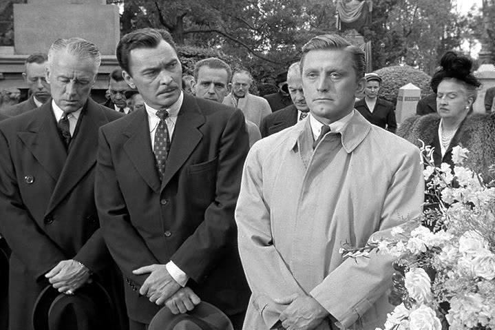 Pigeon is attempting to play peace maker and confronts each of the three stars in his office about the role that Douglas played in their successful careers. This allows each actor’s story to be told via the flashback. First up is Barry Sullivan’s as a writer wanna be director. The pair are young and hungry and wind up working the “B’ unit for Pidgeon’s poverty row output. When the pair come up with a smash hit horror film, they push for a more prestigious production based on a script from Sullivan. With Kirk’s cocky, demanding attitude he gets the production off the ground but willingly knifes Sullivan in the back in favor of an established director that calls to mind Michael Curtiz or Josef von Sternberg in the form of actor Ivan Triesault. Thus ending their relationship.