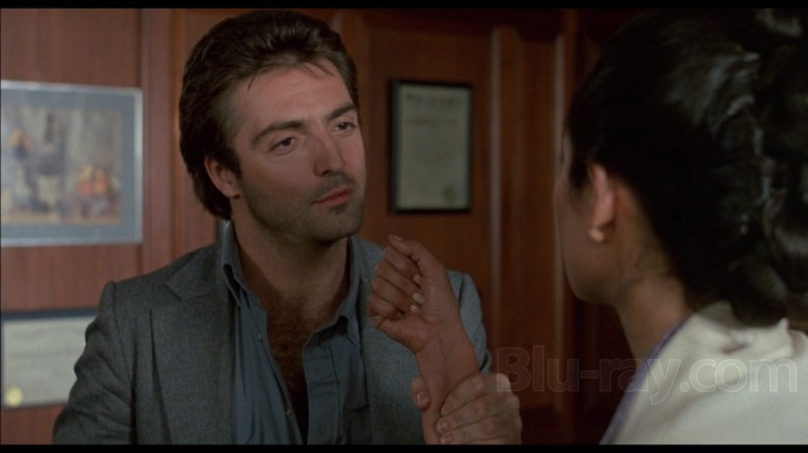 The plot/case kicks off when an old pal of Assante’s is murdered. “Stay out of it.” cop Paul Sorvino tells the P.I. but then that isn’t likely to happen. The first lead takes Assante to a sexual clinic or retreat if you prefer run by the good doctor Barbara Carrera! Miss Carrera running a sex clinic? I do believe all my teenage pals and I were quite happy with our weekend VHS rental by this point in the plot. The duo quickly begin to spar verbally with a heavy emphasis on sex filling the scene.