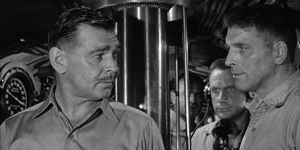 As a prologue, the film opens with Gable’s submarine losing a head to head battle with a Japanese destroyer. He and what’s left of his crew are hanging on to any raft or floating object in the ocean off the Japanese coast until rescued. Cue the harrowing Franz Waxman score. One year later our story begins with Clark a desk bound officer wanting a new command. With his aide Jack Warden in tow he sets his sights on a newly outfitted sub ready to head to sea. This isn’t about to sit well with the young and brash officer who believes the command should be his, Burt Lancaster. Even the crew consisting of Don Rickles, Brad Dexter and Burt’s old circus act pal, Nick Cravat are shocked when Burt isn’t given command. This in turn puts Gable on board and not at all liked or respected from Burt on down.