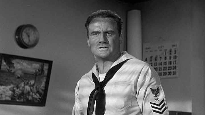 Not uncommon in military films that involve training sequences, the crew and officers bitch and complain while the commander, in this case Gable drives them to exhaustion in order to perfect an attack that he plans to deliver personally to the Japanese fleet. “Dive! Dive!” he’s heard frequently hollering into the sub’s intercom. Behind Gable’s back, Dexter is the officer griping and complaining to Lancaster only to find Gable’s aide, Warden not taking kindly to it. Fireworks between the two soon follow while Burt’s authoritative screen presence tries to keep the men in line.
