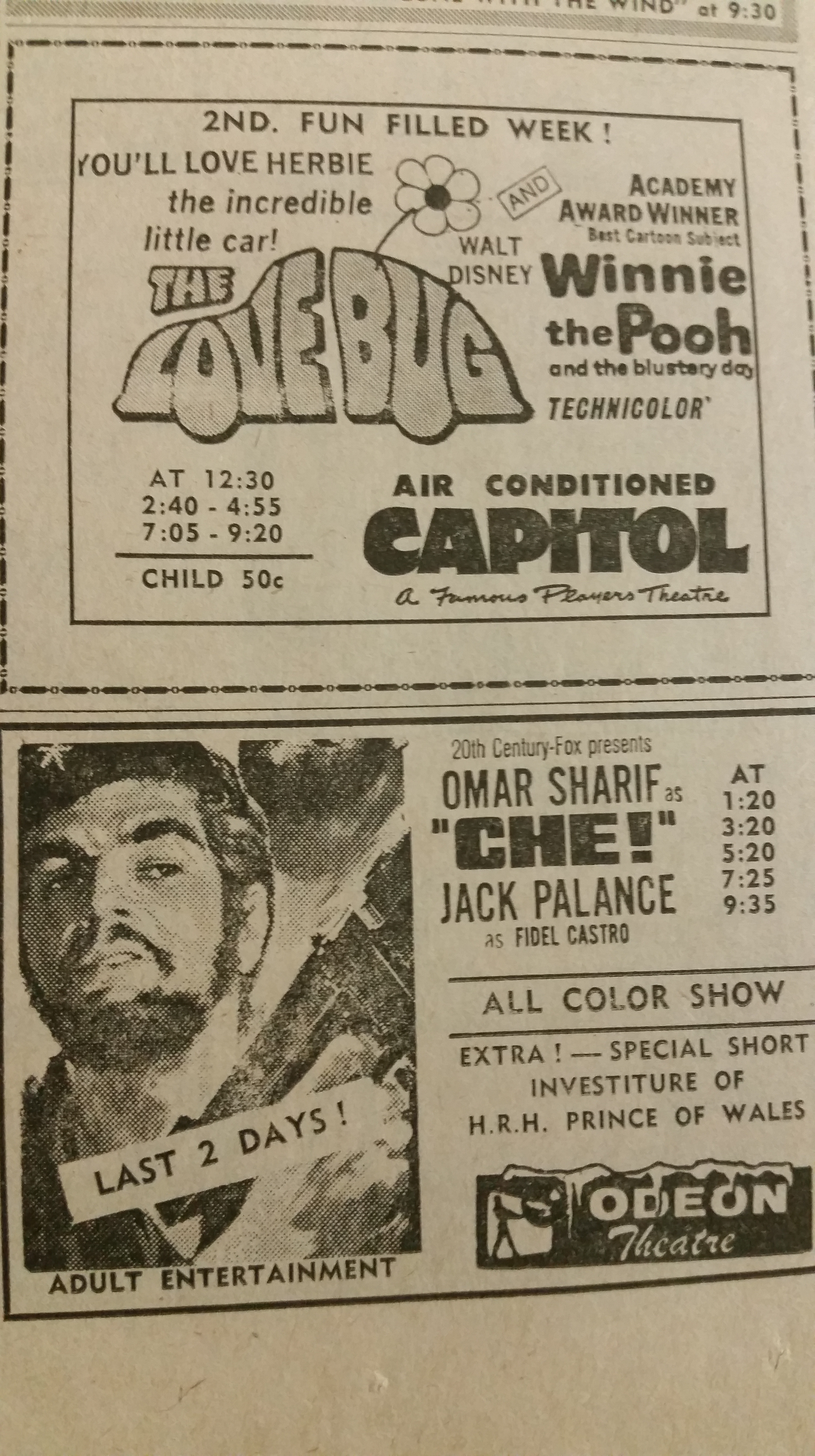We could head on over to the Odeon to see Cliff Robertson take on the role of J.F.K. in Technicolor no less!