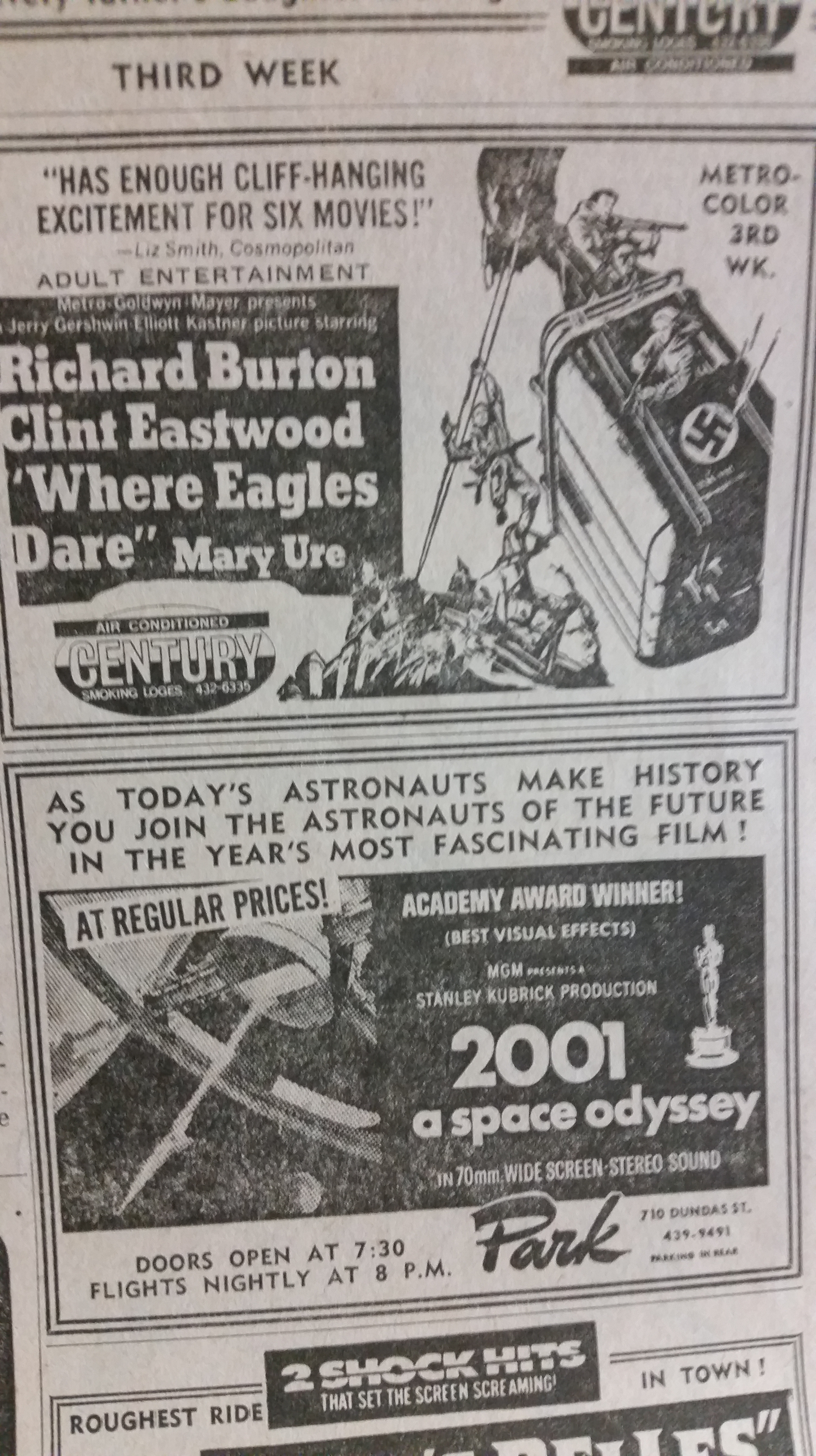 Newspapers out of London Ontario. I just love the double bills. It’s so obvious how things have changed in the theater chains. With Netflix and home video most films never see the inside of a movie house anymore.