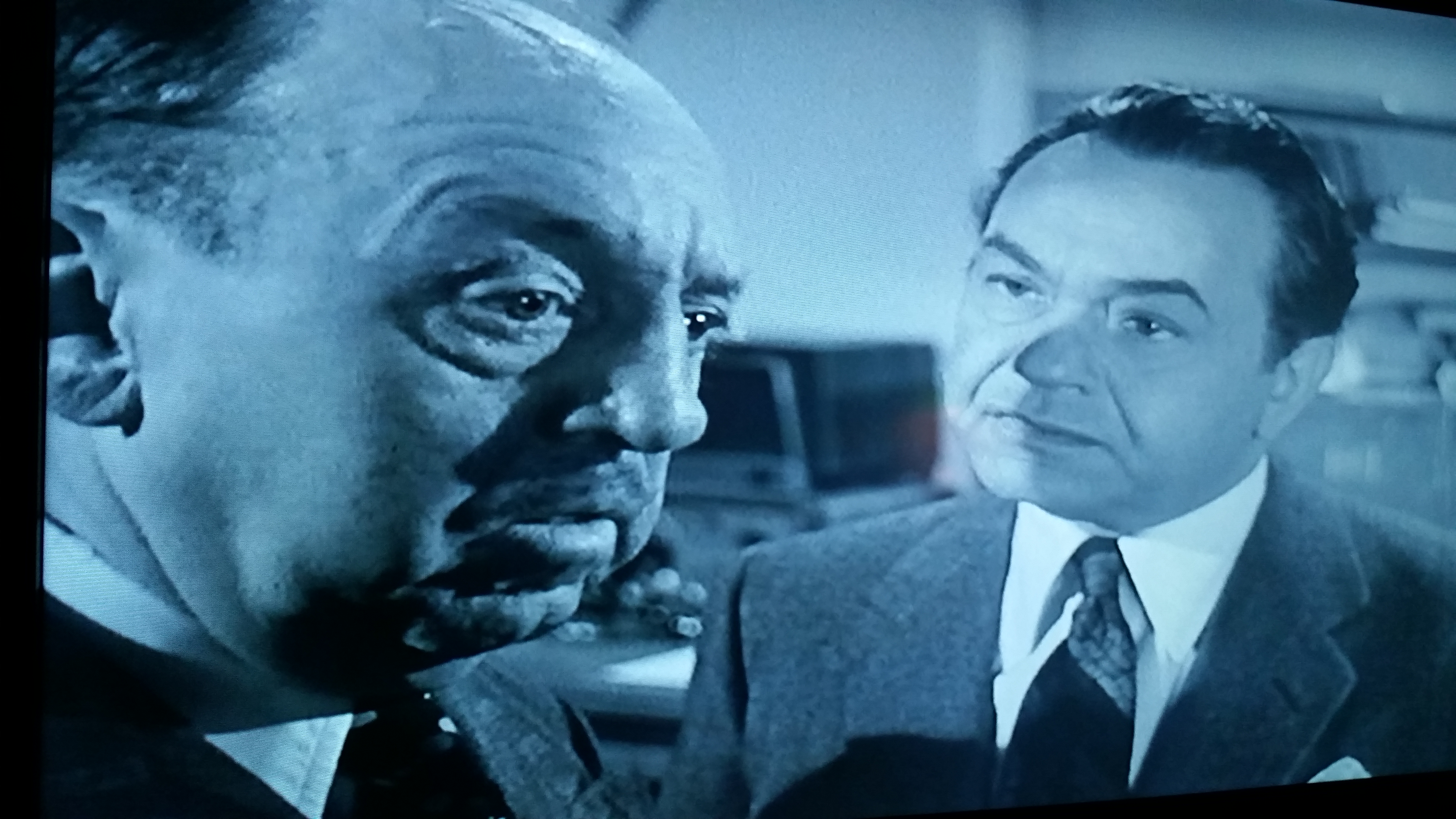 In the tradition of Detective Story, this feature which would be a good fit in the double bill market, plays it both tough and light doing a decent balancing act as it moves along. While Eddie fences with Hall, Kelley and eventually playing it tough with one of the gang members as only Eddie can, we also get a soft touch from Robinson when he deals with another character player of note, unbilled Percy Helton. Helton is a lost soul whom Eddie steers towards the proper path to get some professional help.