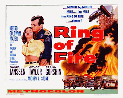 An appropriate line from the Johnny Cash song to go along with this thriller involving a trio of young criminals, law officer David Janssen and a raging forest fire threatening an Oregon town. The only thing is, the title song over the credits is actually a different set of lyrics all together and it’s rocker Duane Eddy delivering them. News to me that the famed Cash song co-written by June Carter had a mirror image in title only.
