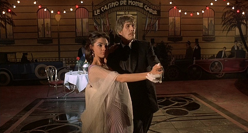 Bats, frogs, hail, blood, locust, the death of the first born etc are quite colorful means for murders when Price begins his vengeful mission. A mission that will see him face off against the ultimate English Cad when he and his lovely assistant come upon intended victim, Terry-Thomas watching an early stag film circa the 1920’s. Terry is such a delight as he slyly gets rid of his housekeeper so he can get to the film while enjoying a good wine. It’s almost a sexual fantasy come true for Terry when Miss North appears before him. However when Price appears as well, Terry is going to become the next victim in a “bloody good” fashion.