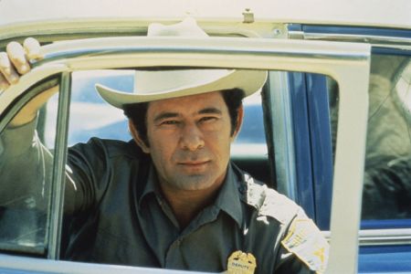 Looking for his next victim, Morrow climbs back into his cruiser when Sheen’s hotrod passes through the small town he controls. With Vic in pursuit, the calm and polite Sheen pulls over and is brought back in to town to face the county judge. It’s a trumped up charge resulting in a 50 dollar fine. Sheen quietly pays it and to Morrow’s disappointment, he doesn’t leave town but rather begins to hang around on the fringe of Morrow’s daily haunts including the diner where love interest Michelle Phillips works.