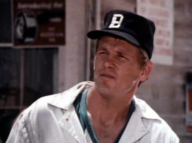 Staring Morrow down across the diner’s barstools, Sheen purposely leaves a torn newspaper article for Morrow to pick up after he leaves in his souped up hotrod. It’s a newspaper article concerning the death of the two sailors. One of which will prove to be the brother of Sheen. Morrow is getting uneasy about Sheen in town and isn’t fond of his digging into the crash. He’s clearly waiting for Sheen to take the bait and make a run for the state line.