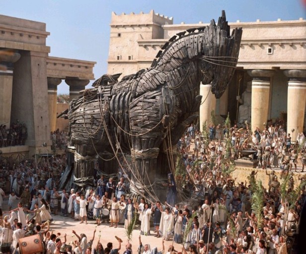 Being the informative site that this is, this is the first I’d heard that Robert Wise, a favorite of mine, was the director of this one. I’ve seen a lot of his smaller films, but none of his spectacles (unless the first Star Trek movie counts). And interesting that such a big studio picture featured such an unknown cast. And that Trojan horse looks pretty cool…but why does it remind me of a rabbit? 😉
