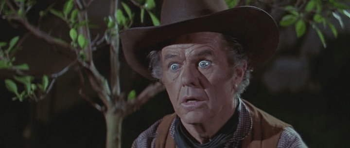 It follows the zany adventures of three separate groups of would be thieves attempting to bust into a fool proof bank overseen by western regular John Anderson. This isn’t just any regular bank either. It’s the bank in the town of Friendly where famed outlaws like the James Boys and The Younger Brothers store their own cash. It’s where our western baddie clad in solid black, Claude Akins and his sidekick, Elisha Cook Jr. deposit their own loot after robbing a train during the film’s opening scene.
