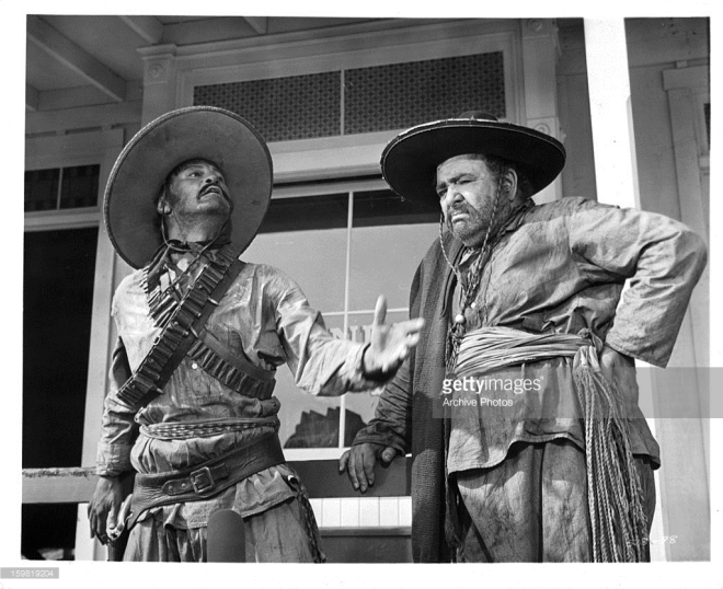 Terrorizing the country side and representing group number two at the head of an army of bandits is Akim Tamiroff and his poor excuse of a bandit son, Larry Storch. Not that wise in the ways of bank robbing, the pair continue to charge the bank on a regular basis and wind up in the middle of a shooting gallery led by town sheriff John Larch.