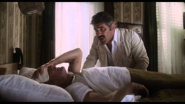 Holden more or less stakes out the isle and gets a chance to come face to face with Fedora while she shops on the mainland. Closely guarded by her chauffeur (not Max) she seems but a prisoner and flighty, not seeming to recall Holden from her past. Helping us along with the story of Holden is a flashback within a flashback where Stephen Collins is playing the Holden character during the 1940’s on set with Keller and Ferdy Mayne trying his best at a Michael Curtiz impression (I think). It’s here we’ll see Fedora and Collins/Holden have a quiet affair on the beach.